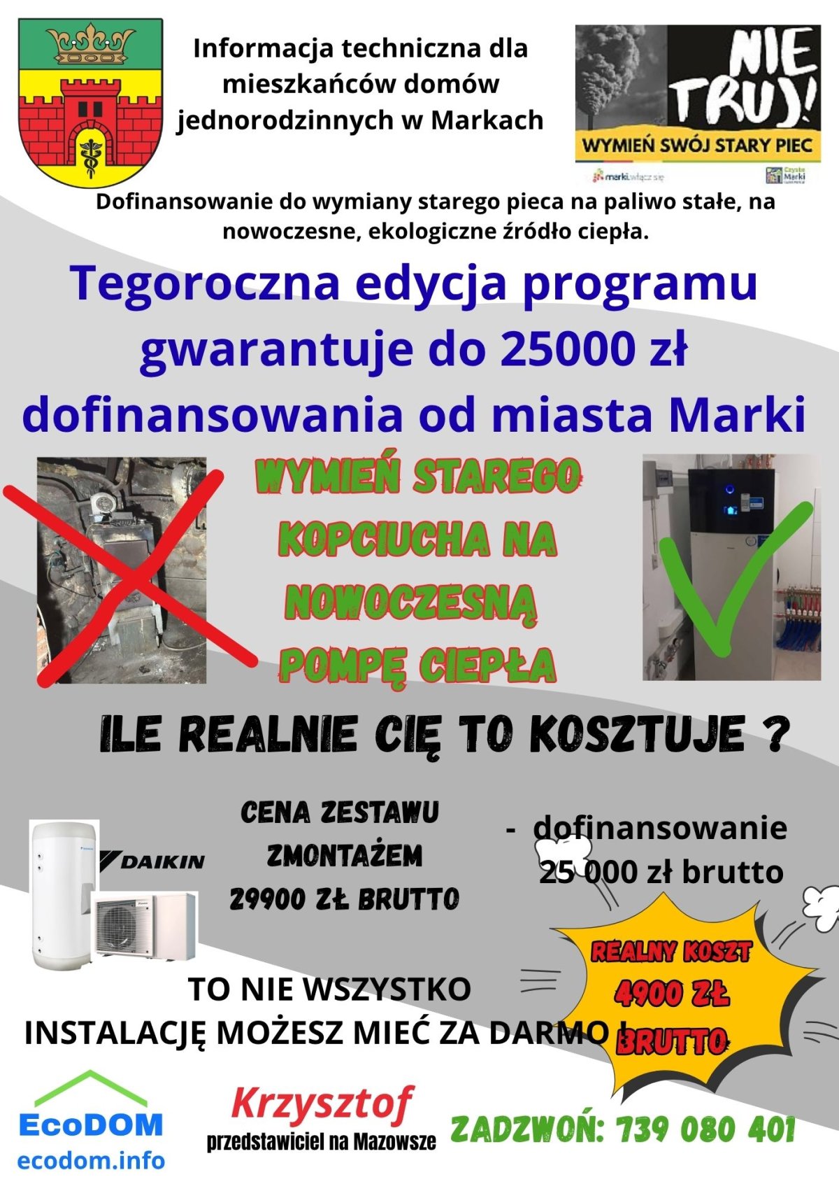 Mieszkasz w Markach? Chcesz wymienić kopciucha i zyskać miejską dotację? Taką możliwość daje coroczny program miasta, którego celem jest zmniejszanie niskiej emisji powodującej wiele groźnych chorób.
